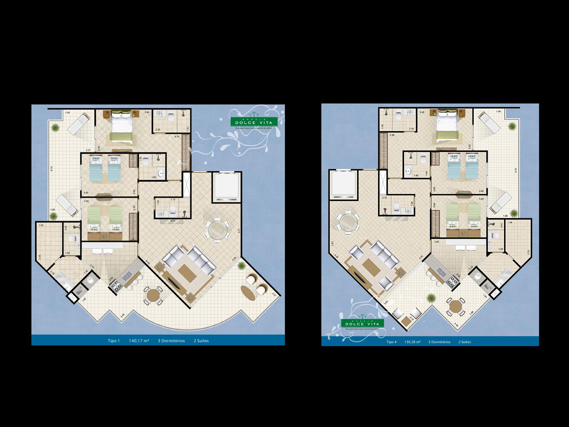 Unidades de 124m² 132 m² 142 m² com 3 dormitórios